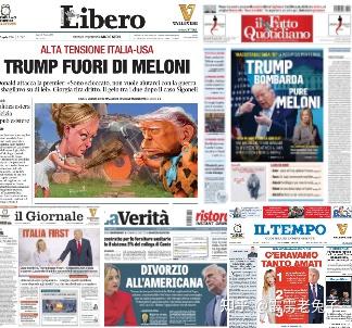 意大利报纸在头版报道特朗普对梅洛尼的攻击,特朗普在欧洲就一个盟友都剩不下了……