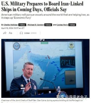 美军准备在中东以外国际海域扣押涉伊朗船只。