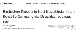 路透社报道:俄罗斯计划从5月1日起停止从哈萨克斯坦向德国出口石油。