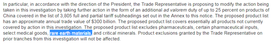 下图是我在美帝7月2日发布的3000亿美元公告里面的截图,明确指出征税不包括稀土。