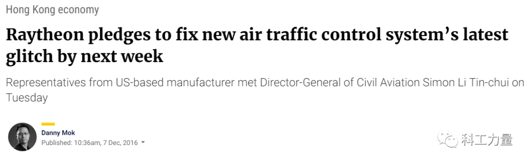 《南华早报》报道,美国制造商雷神公司承诺为香港机场空管系统的故障提供解决方案