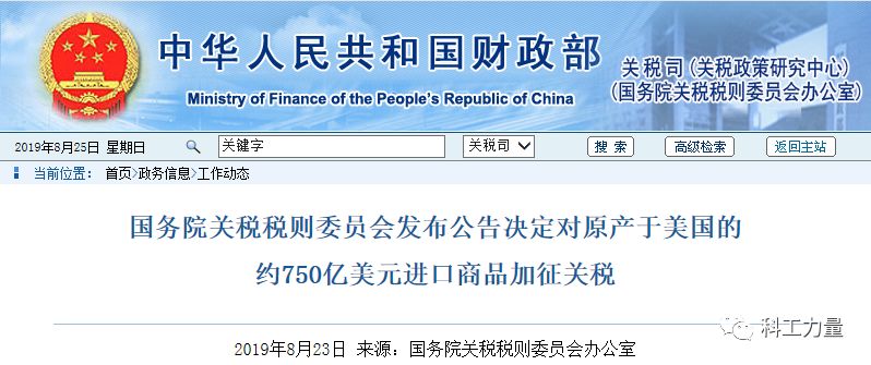 紧接着23日,国务院关税税则委员会决定,对原产于美国的5078个税目、约750亿美元的商品,加征10%,5%不等关税。消息一出,美股应声下跌。美国一系列损害中国利益的行为,中国的各项反制措施已充分准备。