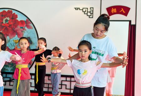 眼波潋滟、身段婀娜、水袖翻飞,石牌中心小学孩子们的表演博得围观者阵阵掌声。他们的师傅、苏州昆剧院副院长俞玖林说,每到开学季,学校是否开设小学生昆曲研习班,成了不少家长的择校标准之一,“昆曲六百年,最美在今朝。”