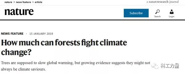 同样在今年1月15日,《自然》杂志刊出一篇题为“How much can forests fight climate changge ”文章,称树木可能并不是解决气候变化的有效方案,森林的这种变暖效应可能会部分或完全抵消其带来的冷却效应。