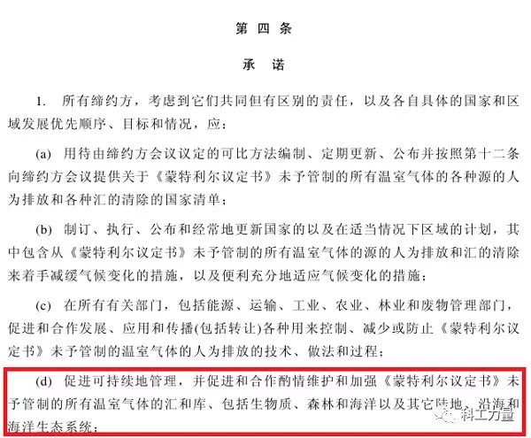 联合国1992年通过的《联合国气候变化框架公约》(以下简称《气候公约》)就确认了碳汇(森林的碳储功能)在气候变化中的地位。公约的第四条第1款(d)项就规定“促进可持续地管理、并酌情维护和加强《蒙特利尔议定书》未予管制的所有温室气体的汇和库,包括生物质、森林和海洋以及其他陆地、沿海和海洋生态系统”。已经原则性的涉及森林储碳作为吸收温室气体的地位。