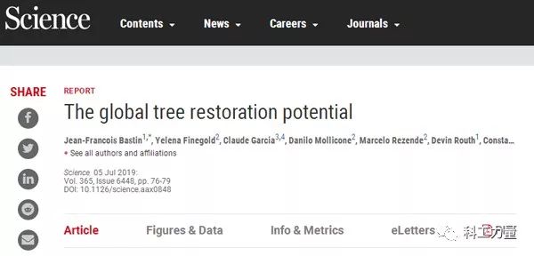 今年7月,瑞士科学家在美国《科学》周刊上发表了一篇题为“The global restoration potential”文章,指出对抗全球气候变暖的最有效的办法就是“种植大量树木——1万亿棵甚至更多。
