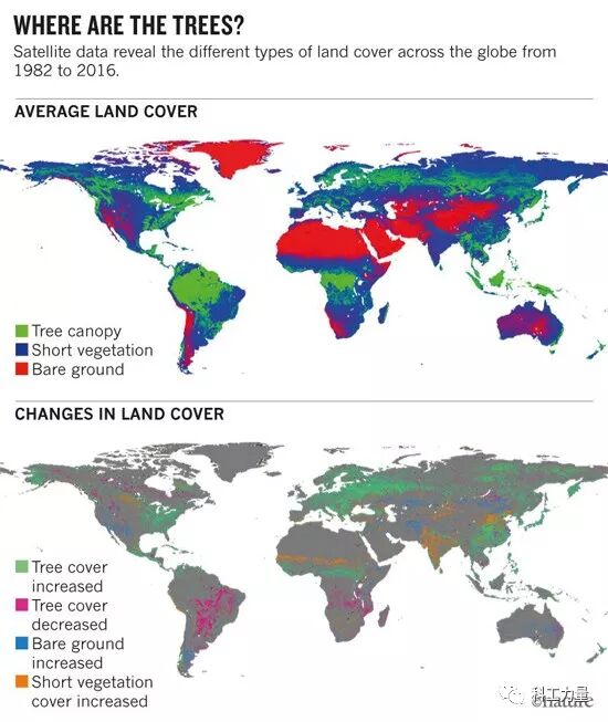 全球1982~2016年林地变化卫星数据图 来源:《自然》杂志