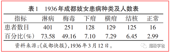 1936年,四川成都省会公安局对东六区525名妓女的检查,只有16人无病。有的患病者同时感染两种以上的性病。