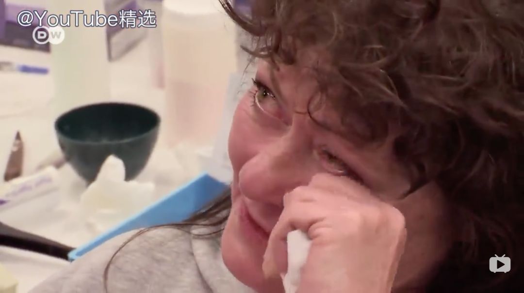 当她戴上医生为她做好的假牙的时候,她一时没有忍住眼泪。