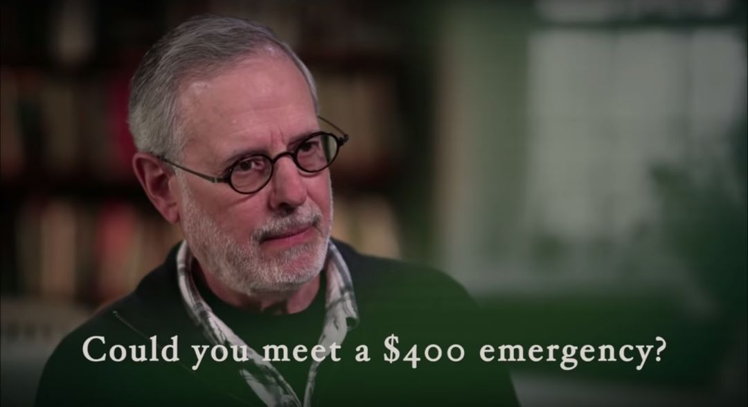 节目中提到了美联储曾经做过的一个调查,调查中有个问题是:如果您的家庭遇到突发状况急需400美元,您有这笔钱吗?