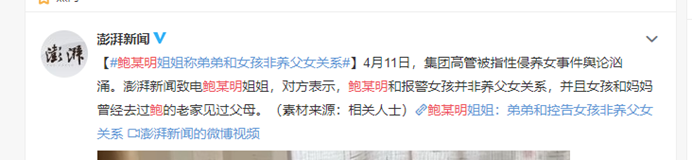 4月8日,“上市公司高管性侵未成年养女三年”的事件在网络上发酵。