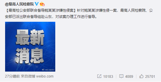 4月13日,最高人民检察院、公安部派出联合督导组奔赴山东,介入鲍毓明性侵养女一案。