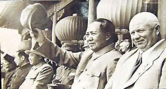 10月1日这天,赫鲁晓夫应邀登上天安门城楼,同中国领导人检阅游行队伍。他指着正在天安门前通过的民兵方队说:“这,将是核导弹下的一堆肉。”接着他阴沉着脸告诉毛泽东,苏联准备撤走所有援华专家。
