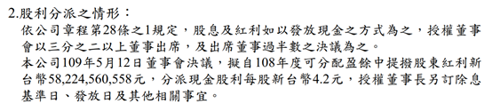 以在台湾股市上市,位居台股第二大市值的鸿海为例,2019年度分派现金分红即为582亿新台币,大约136亿人民币。