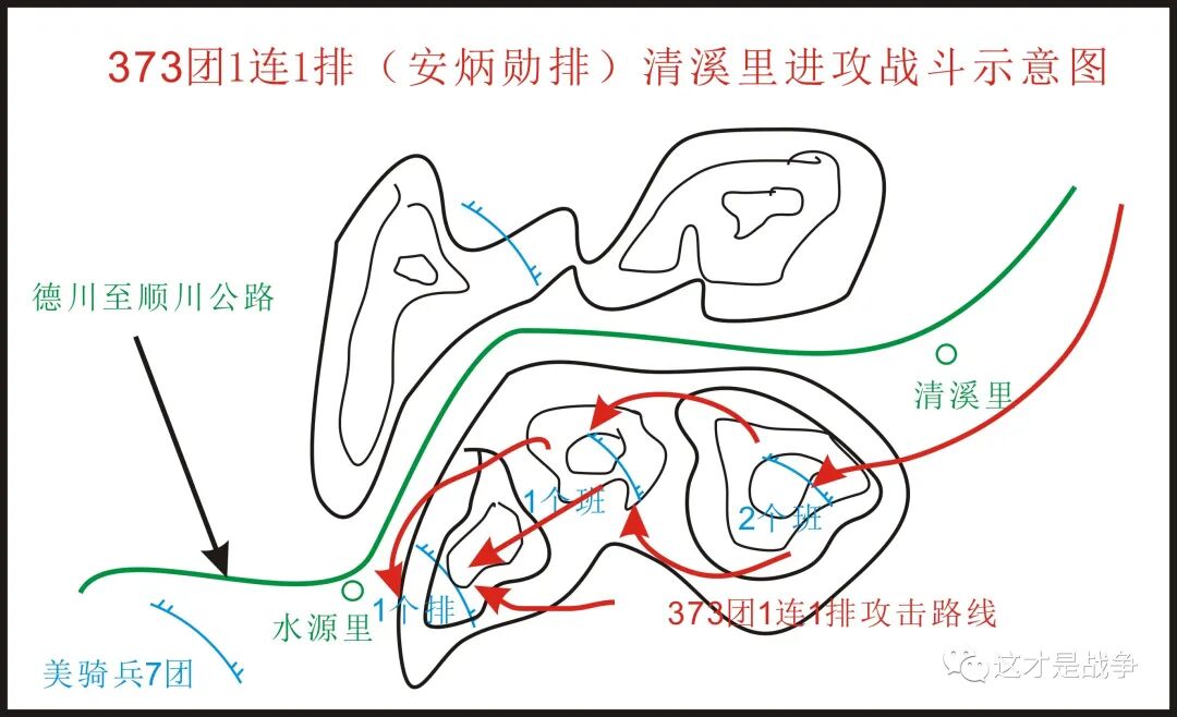 29日晚20时,373团1连1排进至清溪里,看到了侦察连所说的清溪里西南山地。副连长冯传祥和排长安炳勋一合计,决定以3班为突击班,其余人在后跟进。