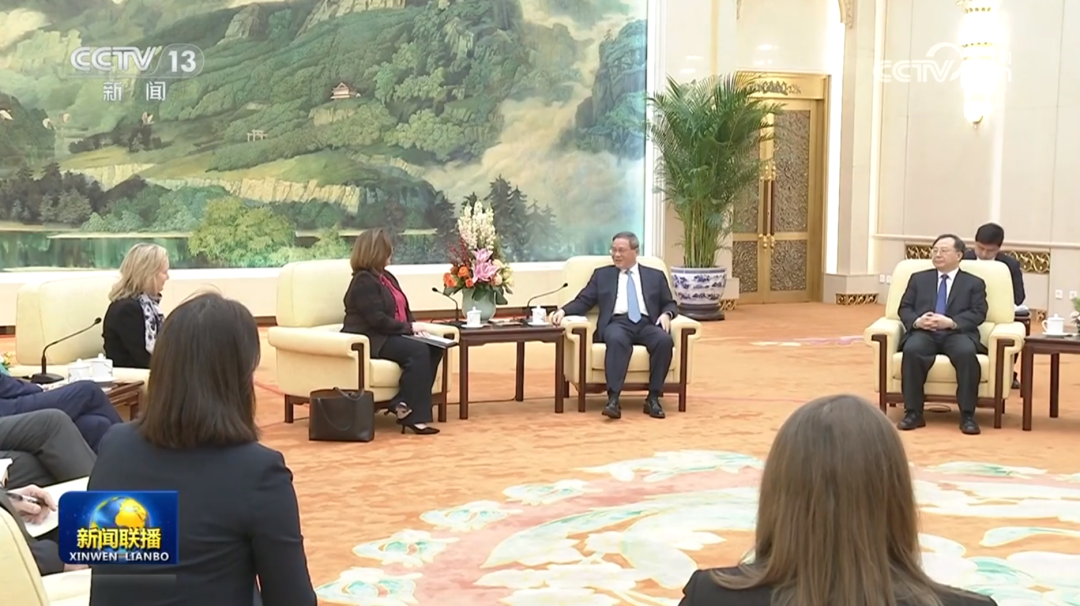 今天我国总理在京会见由美国商会会长兼首席执行官克拉克率领的访华团。