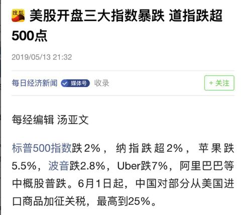 新闻话音刚落,美国股市纷纷大跌,道琼斯指数纳兹达克指数都有了超过2%的下跌。